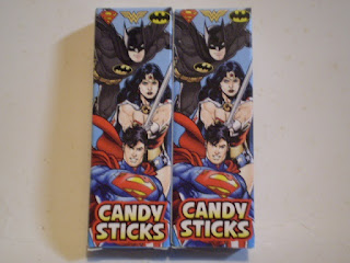 Wonder Woman got the short end of the Candysticks for she only appears on one box and I got four of them. The front features her posing with her hands on her hip.